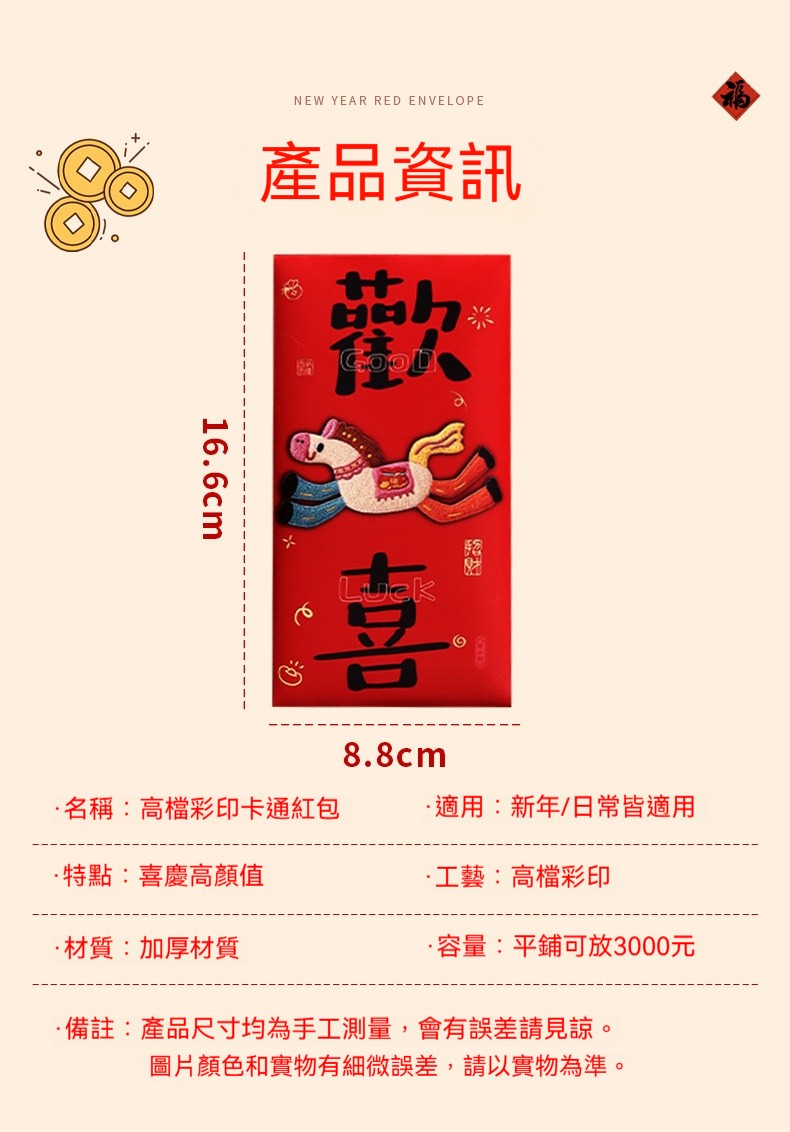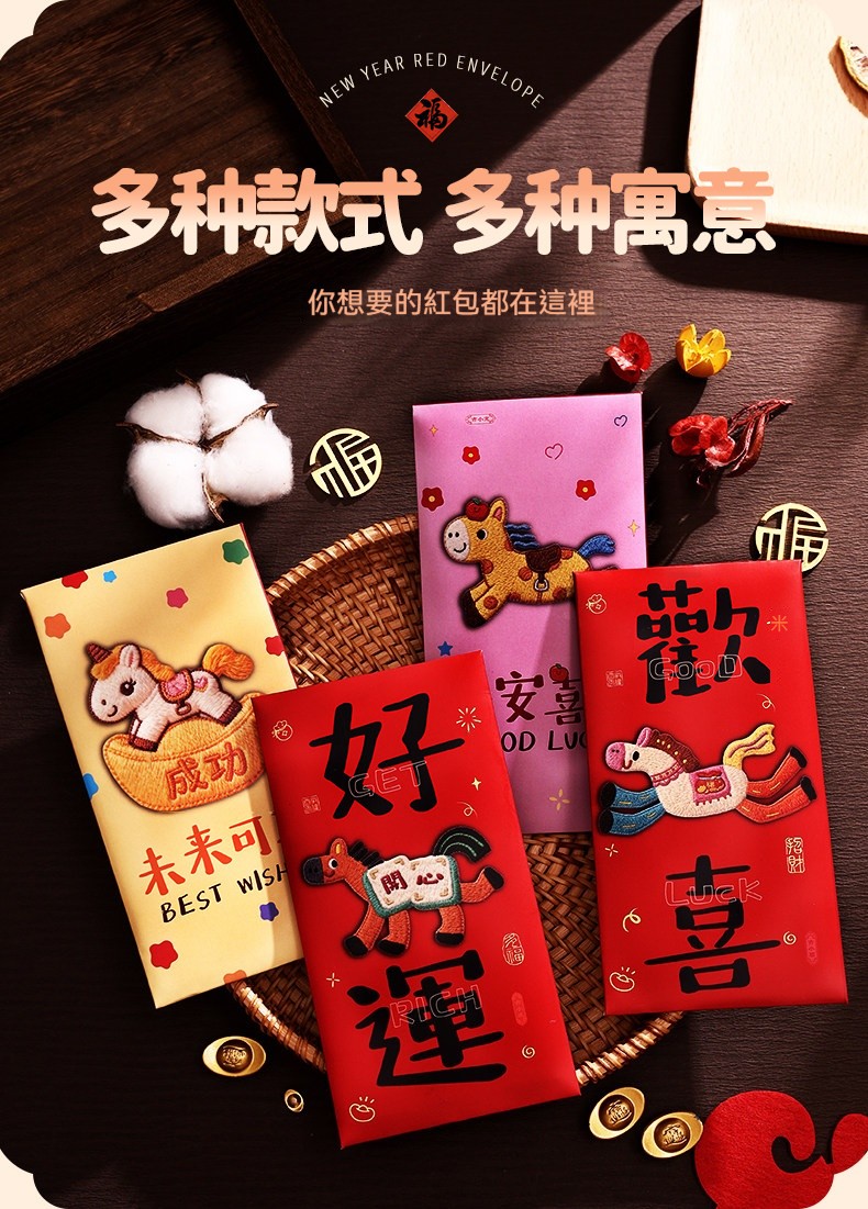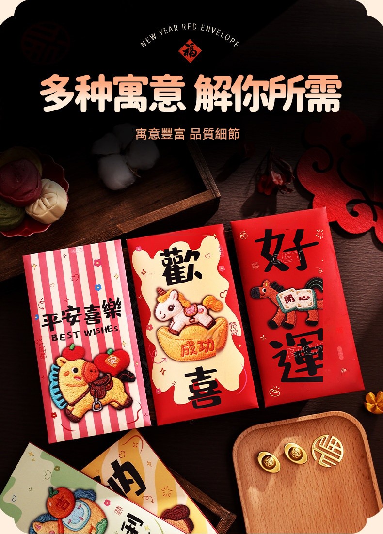 3D刺繡紅包「馬到財來」✨✅ 3D浮雕觸感✅ 硬卡材質挺闊✅ 吉祥語雙版設計✅ 環保油墨印製