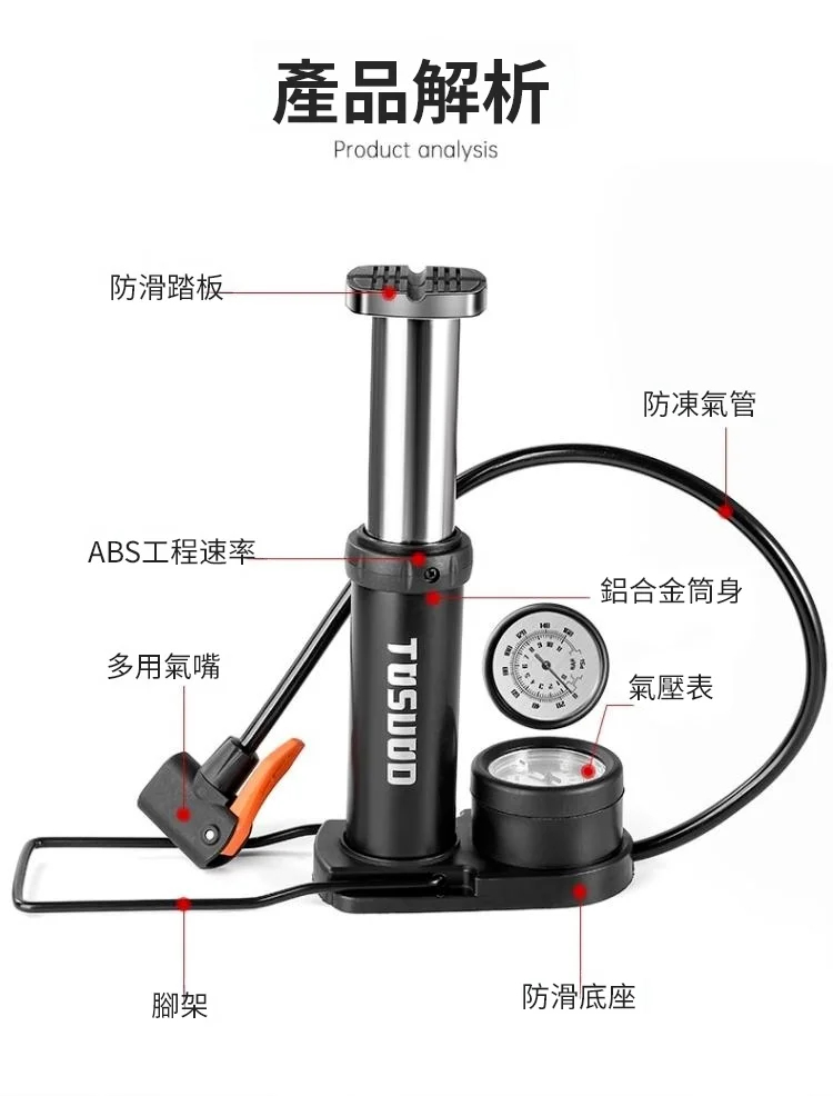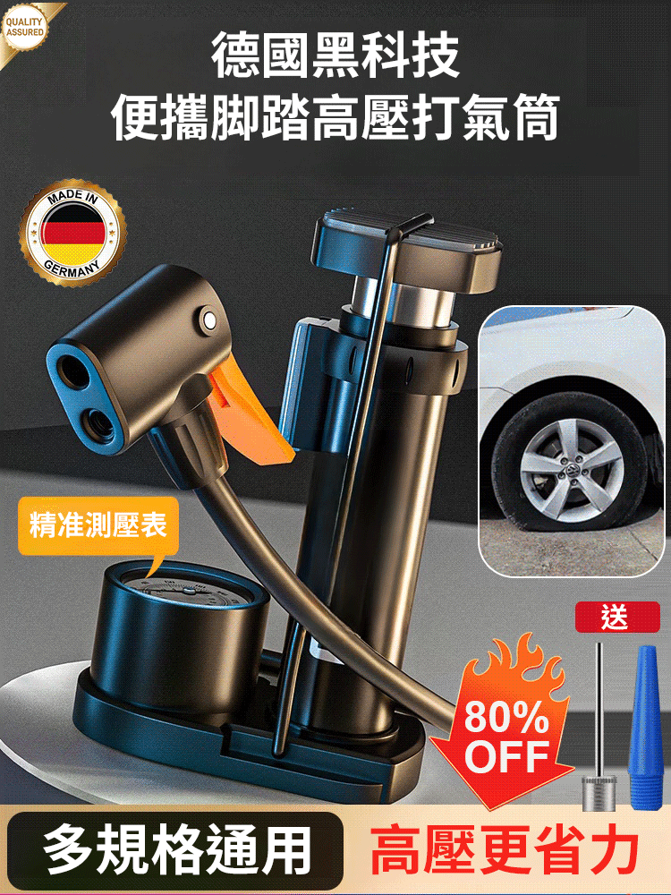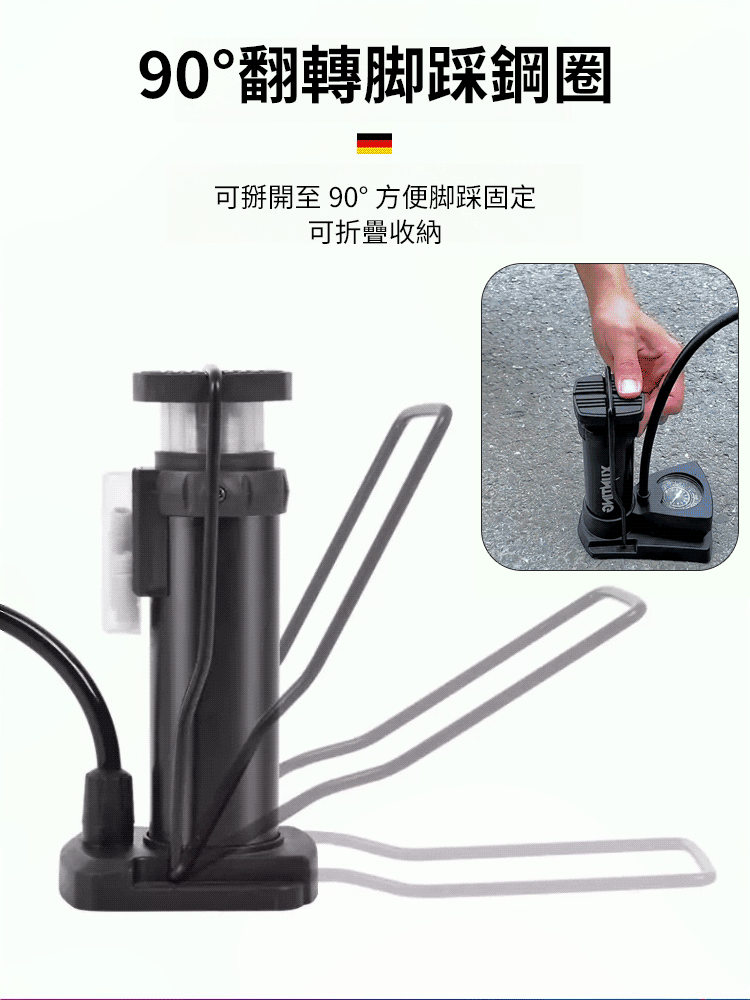 漏氣不用慌✨萬用高壓打氣筒|腳踩省力×通用閥嘴,從單車到汽車全搞定 ✅ 高壓省力杠杆 ✅ 萬用智慧氣嘴 ✅ 防爆壓力錶 ✅ 便攜收納設計